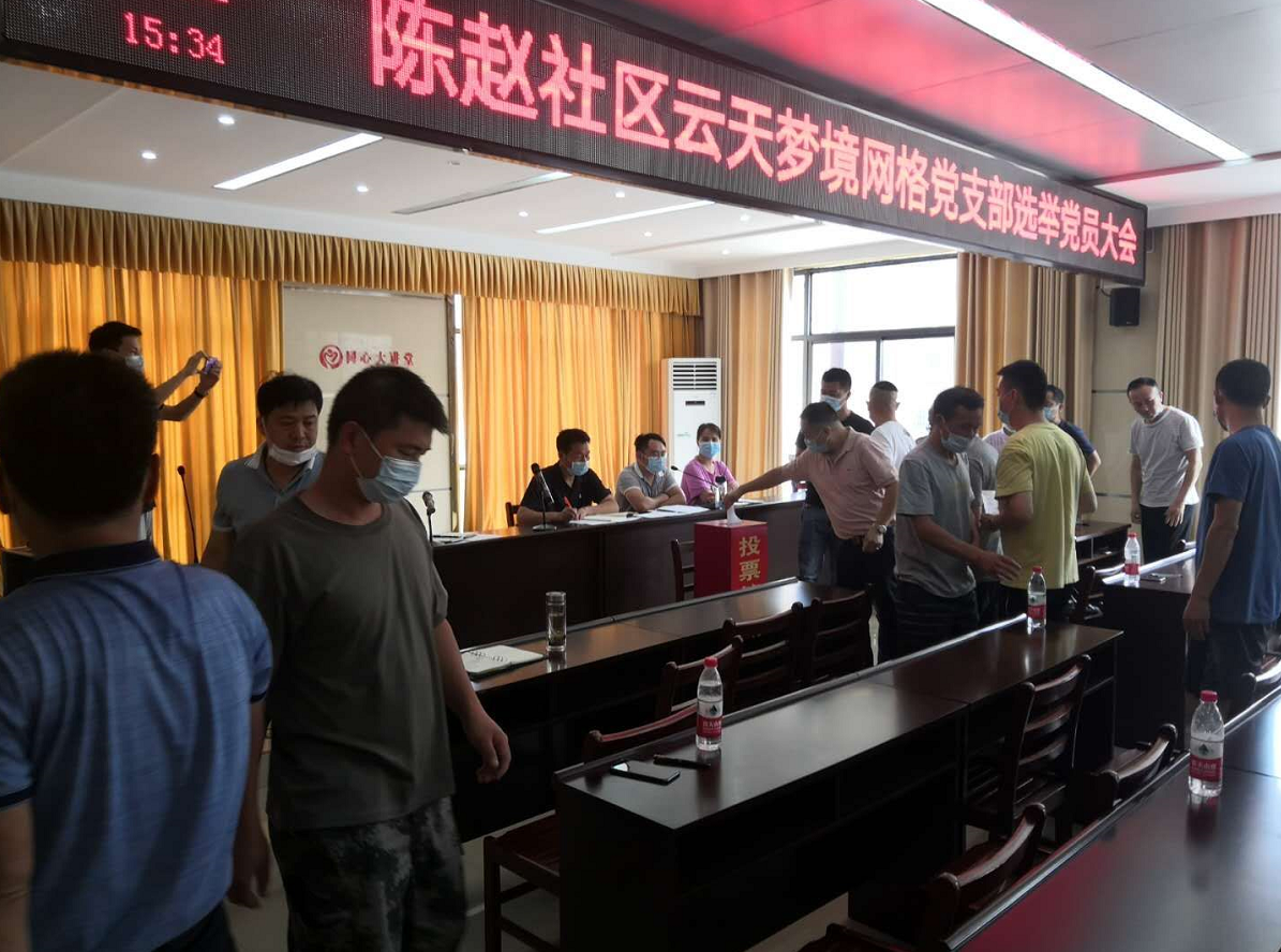 “这次下沉党员进社区报到活动,我们一步一个脚印,稳步推进,用具体行动践行落实党的十九届四中全会关于创新基层社会治理的精神和党员的‘初心使命’, 这是给“七一”最好的生日礼物。” 6月30日,云梦县城关镇陈赵社区党委书记尚磊在陈赵社区云天梦境网格党支部选举党员大会上说到。