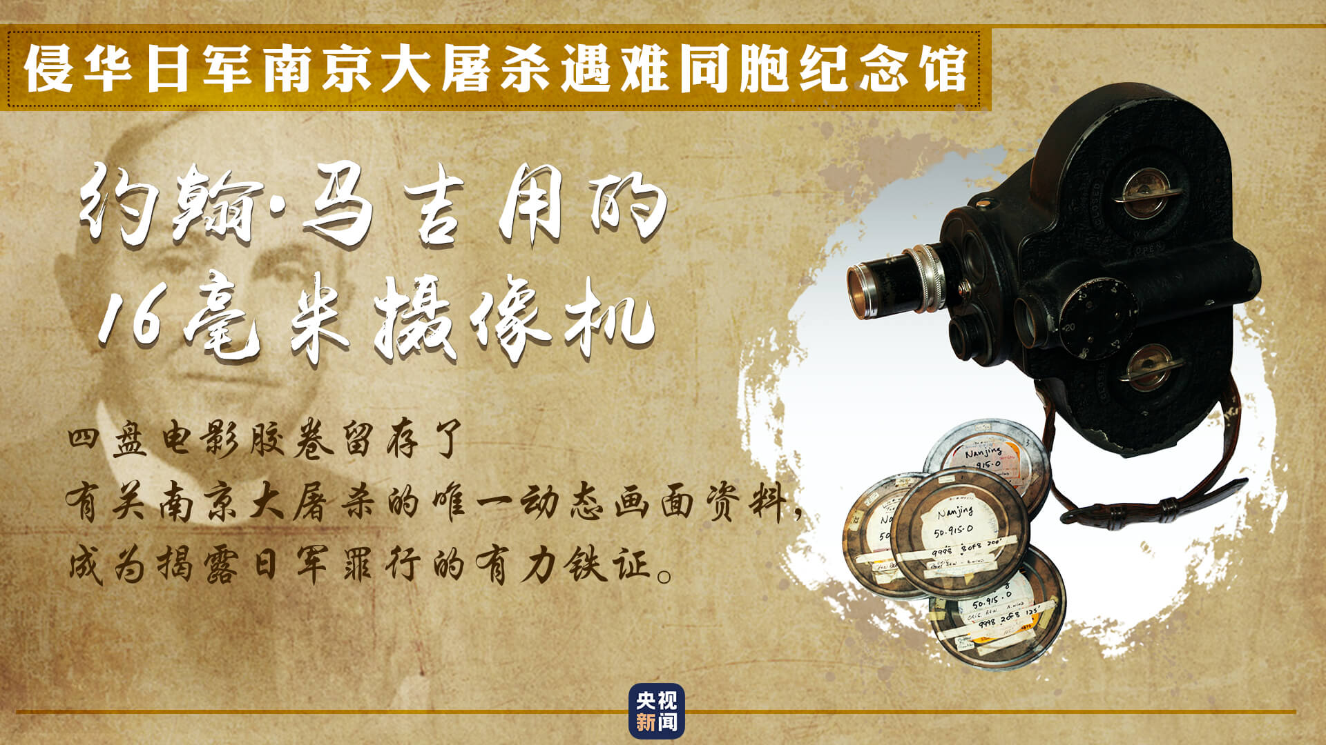 约翰·马吉用他的16毫米家用摄像机,借职务之便偷偷拍摄,记录下日寇的暴行。整整4盘胶卷,每一帧都是揭露日寇罪行的有力铁证,也是留存至今的有关南京大屠杀的唯一动态画面。