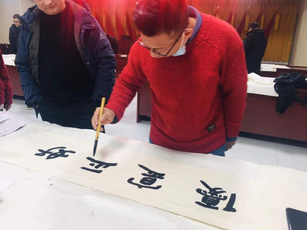 “百善孝为先”“争当排头兵”“思想破冰再出发,守正创新争一流”“打铁还需自身硬”……在义堂镇,20余名来自县书法家协会、美术家协会的艺术家和本地书画爱好者正在挥毫泼墨。