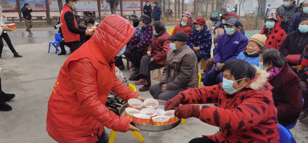 寒冷的腊月,热腾腾的腊八粥,笑容满面的老人们,黄土坡村的村级广场上格外有年的味道。黄土坡乡风文明服务队和县义工联合会一起买来熬制腊八粥的食材,提前一天泡好,一大早就入锅熬制,考虑到老年人的口味,还特意熬制了无糖和加糖的两种口味。热气腾腾的锅里,大米、小米、红豆、薏米、莲子、花生、桂圆和红枣等食材在一起翻滚,一碗碗热腾腾的腊八粥端上来,村民们一边品尝腊八粥,一边观看文艺表演,心里感到既温馨又愉悦。
