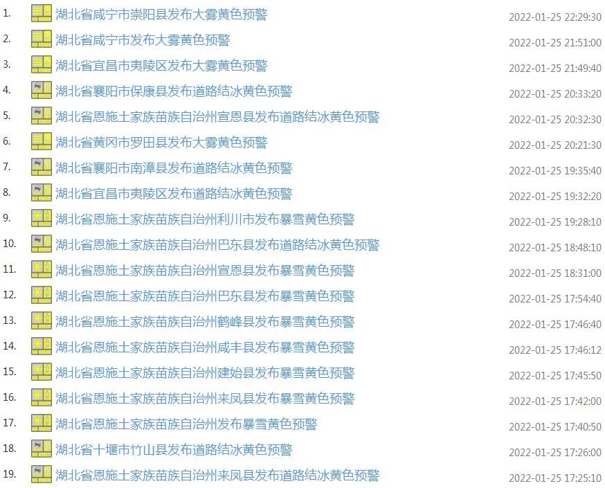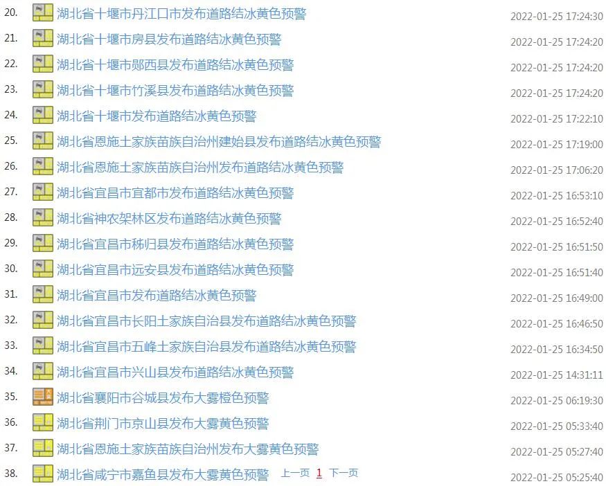 湖北气象官网连发38条预警信息