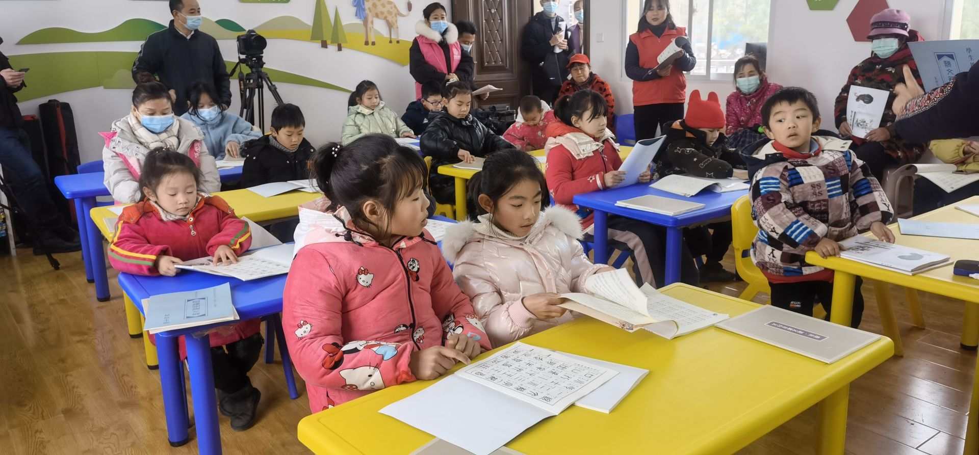 课堂上,湖北省社科联、华中师范大学一附中的老师为孩子们授课,讲授启蒙古文经典等传统国学,同时与孩子们进行互动交流,寒冬的黄土坡村儿童服务站格外温暖火热。专家教授们还给黄土坡村的儿童及村民送来了专为儿童编写的一套最新版的童蒙教材《圣学根之根》等读物,受到孩子和村民们的欢迎。(记者 李铮)