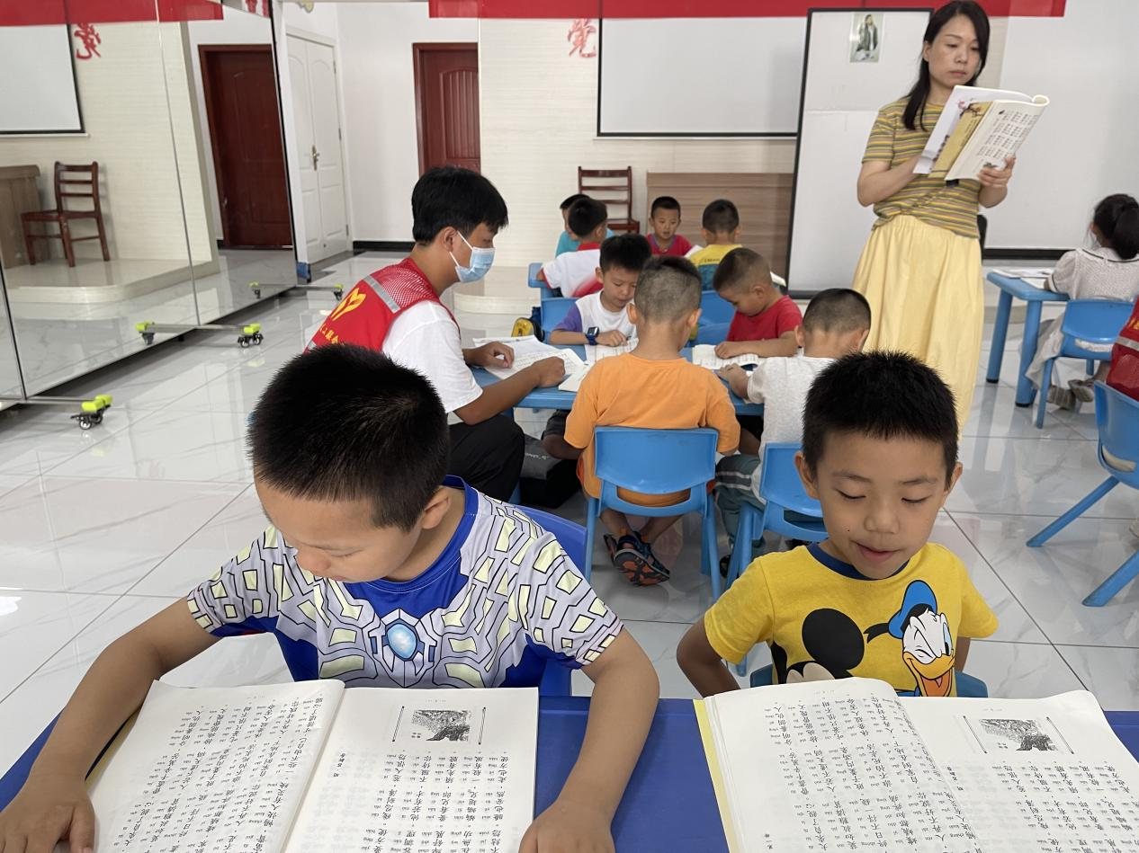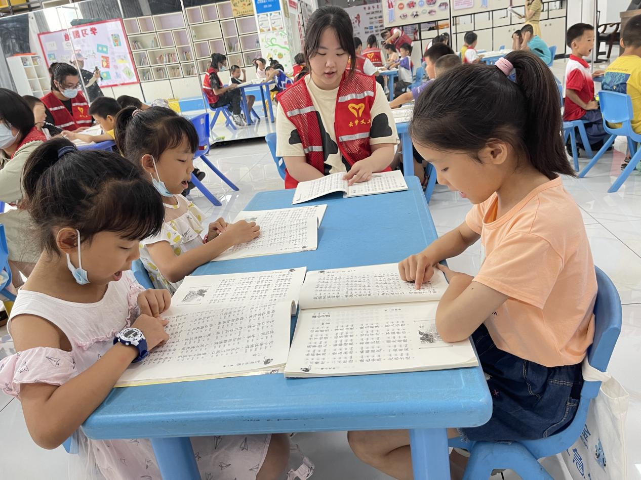 7月18日,武昌理工学院支教志愿小队联合县义工联合会在县开发区辛李社区儿童服务站开展“经典名篇读诵,传承传统文化”主题活动。