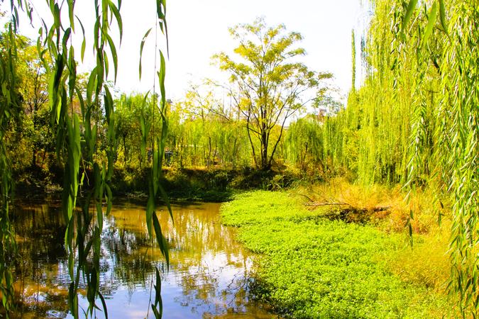 金秋云梦,秋景如春,杨柳依依,醉了游人。