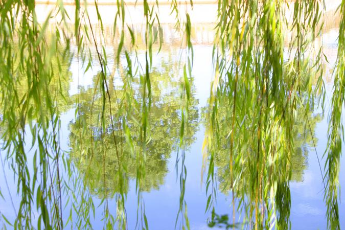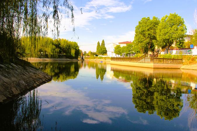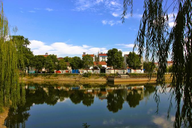 2022年10月20日,金秋时节,云梦县城关镇西王村杨柳依依,水中倒影,蓝天白云,美丽如春,令人陶醉。