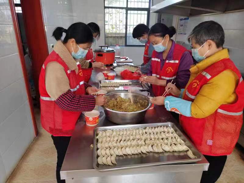 在福利院食堂里,志愿者在忙碌地为老人们包饺子。大家井然有序地洗菜、切菜、拌馅,经过三个小时的分工合作,在欢声笑语中包出了上千只饺子。临近中午,老人们吃上了热腾腾的水饺,幸福洋溢在他们脸上。