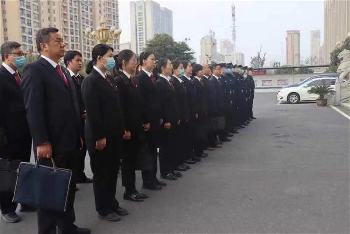 10月27日上午7点,云梦法院38名干警在办公楼前准时集结,整装待发。