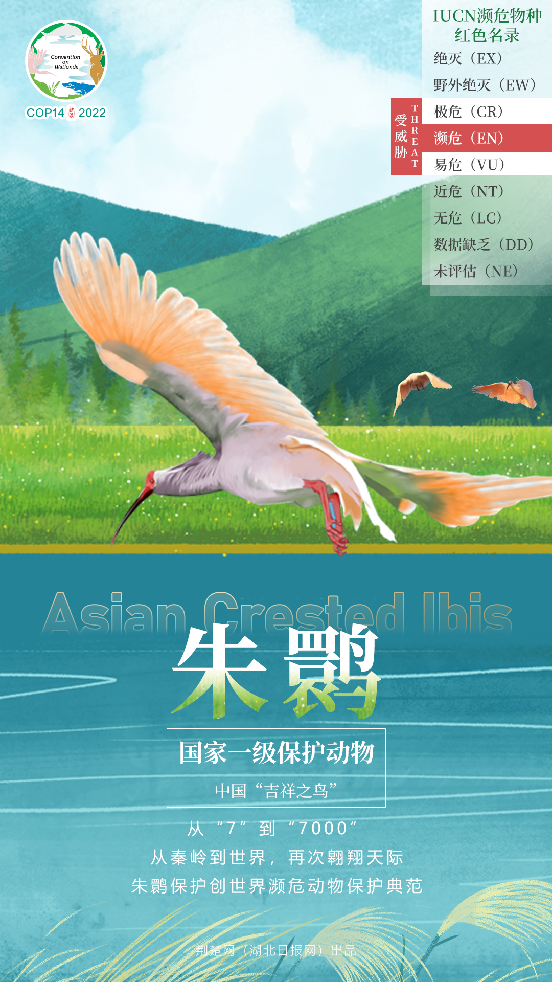 专家在陕西洋县发现世上仅存的7只野生朱鹮