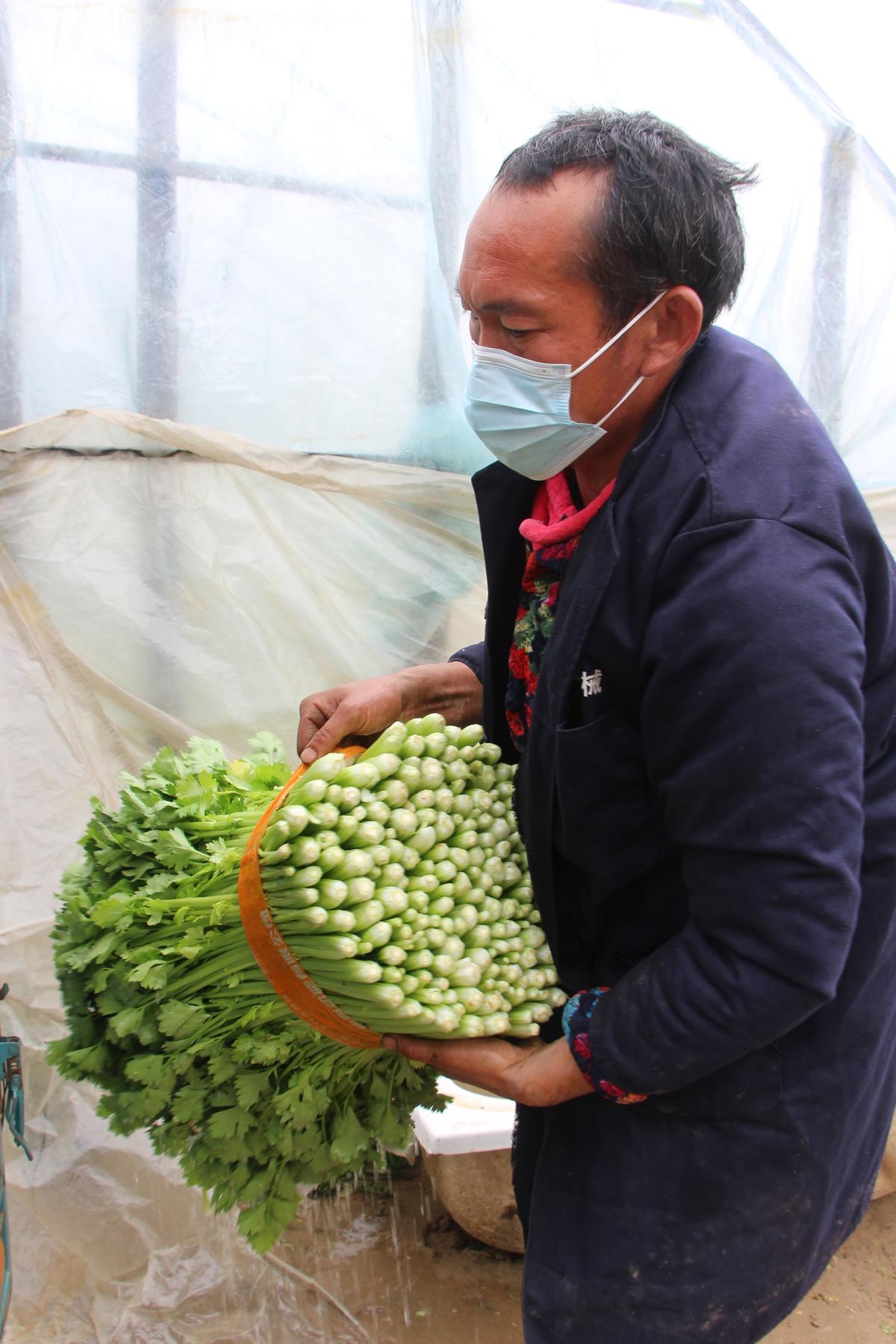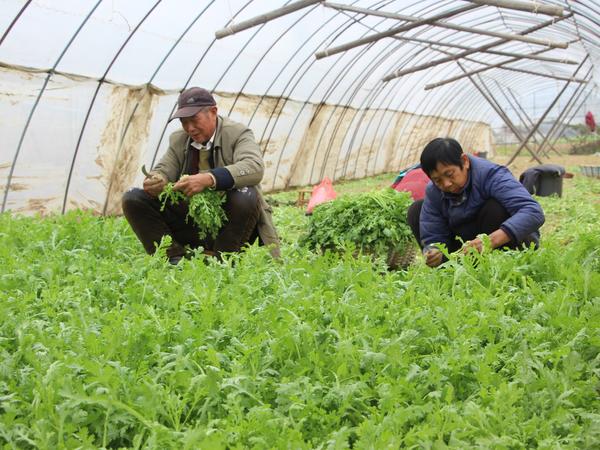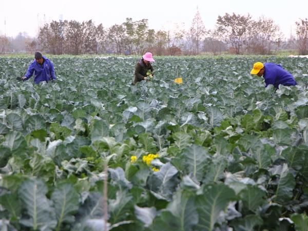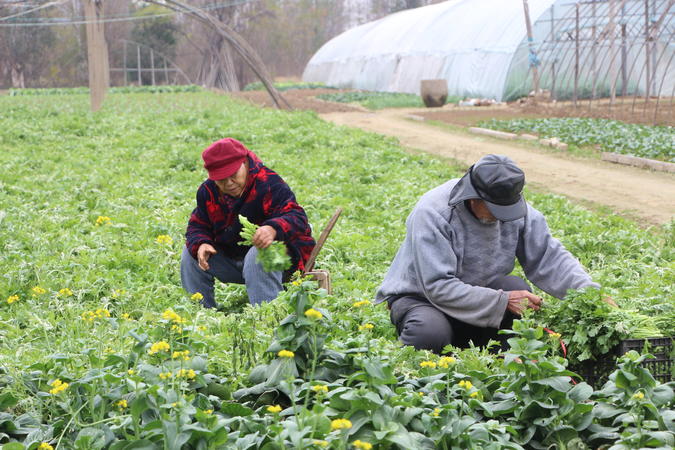 天气寒冷,农民可没有闲着,蔬菜产地的农民冒着寒风依旧在田园忙碌着。