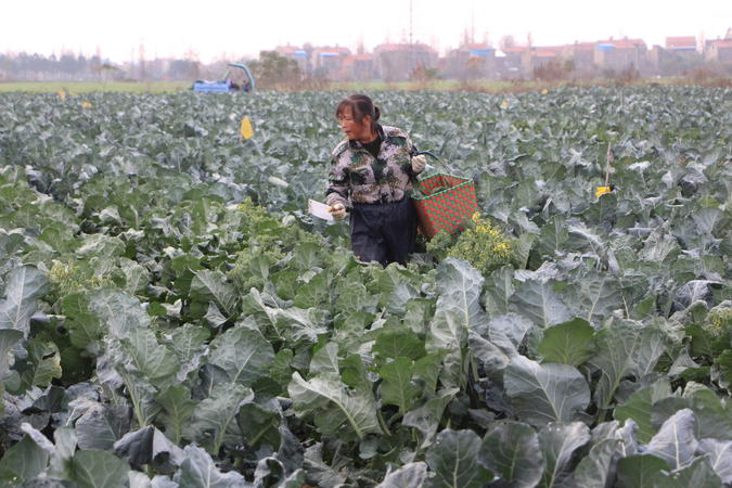 当日,隔蒲潭镇四季长青蔬菜种植专业合作社、每之文家庭农场组织多个劳力收获优质西兰花,供应河南等地市场。