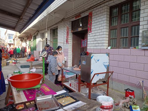 今年受疫情影响,街上市民比往年略少。灌肠摊主胡女士依然接了六笔生意,一共灌制了100斤香肠。(黄永强)