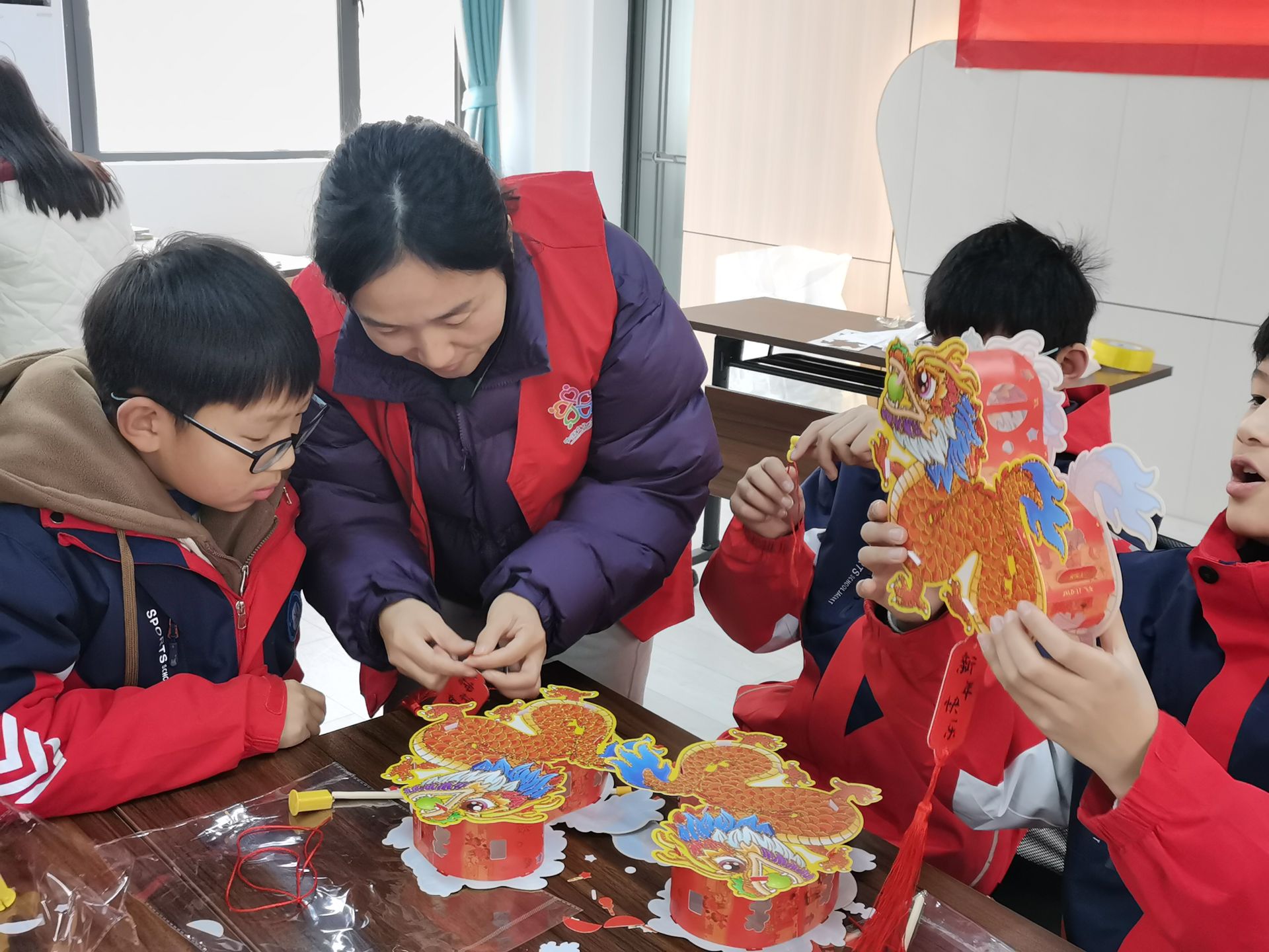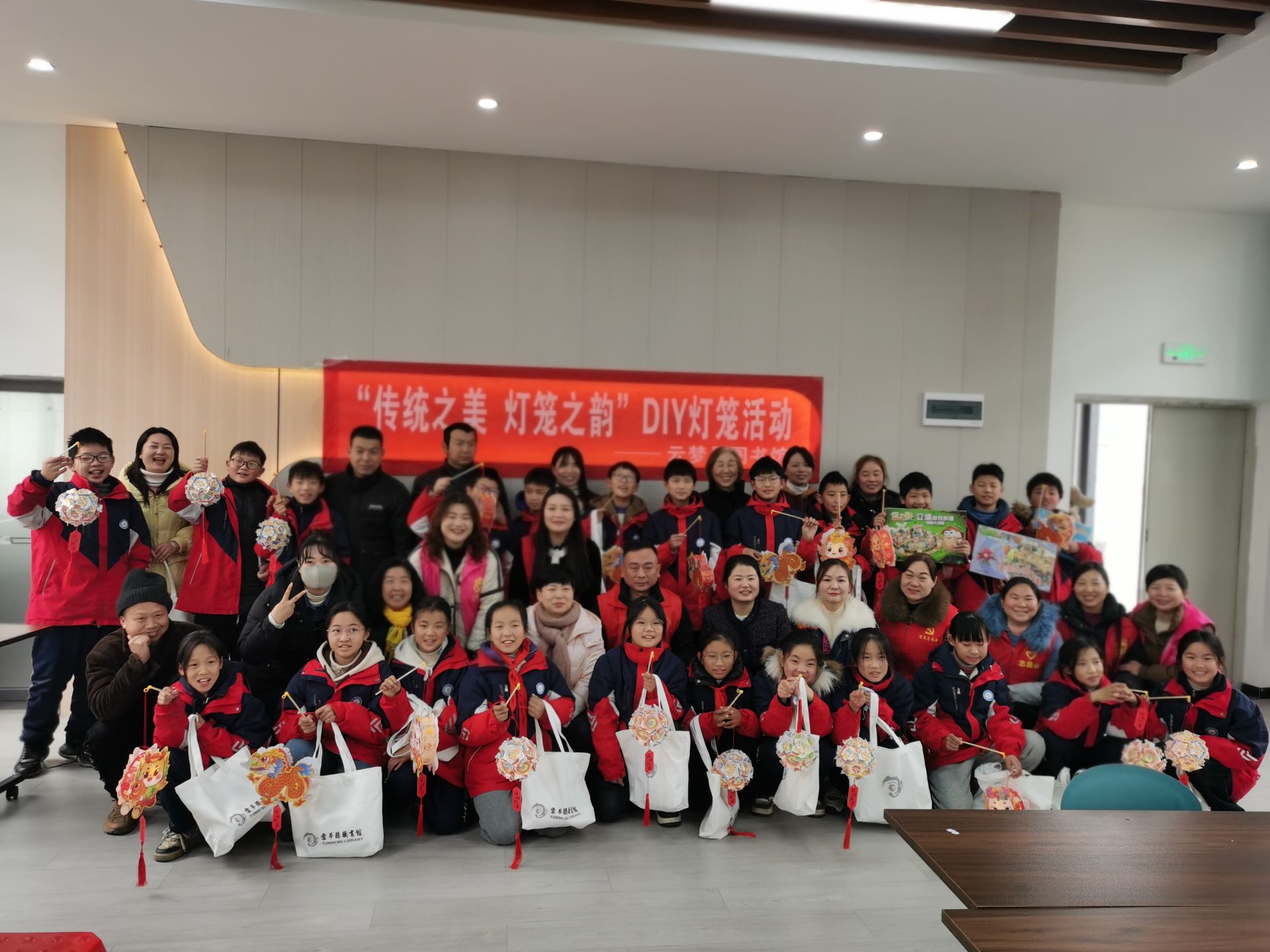 活动开始,县图书馆志愿者首先向同学们讲解了灯笼的制作方法。随后,在志愿者的带领下,进入灯笼制作环节。大家拿着提前分发的灯笼制作材料,按照老师的讲解步骤,摆灯架、粘灯饰、装彩灯、挂灯线,不一会儿,同学们就提着灯笼相互展示起自己的成果。小小灯笼,传递的不仅仅是一份节日的祝福,更多的是对中华优秀传统文化的一种弘扬和传承。活动最后,志愿者与同学们合影留念,记录这欢乐的时刻。县图书馆还给参加活动的小朋友发放礼品。
