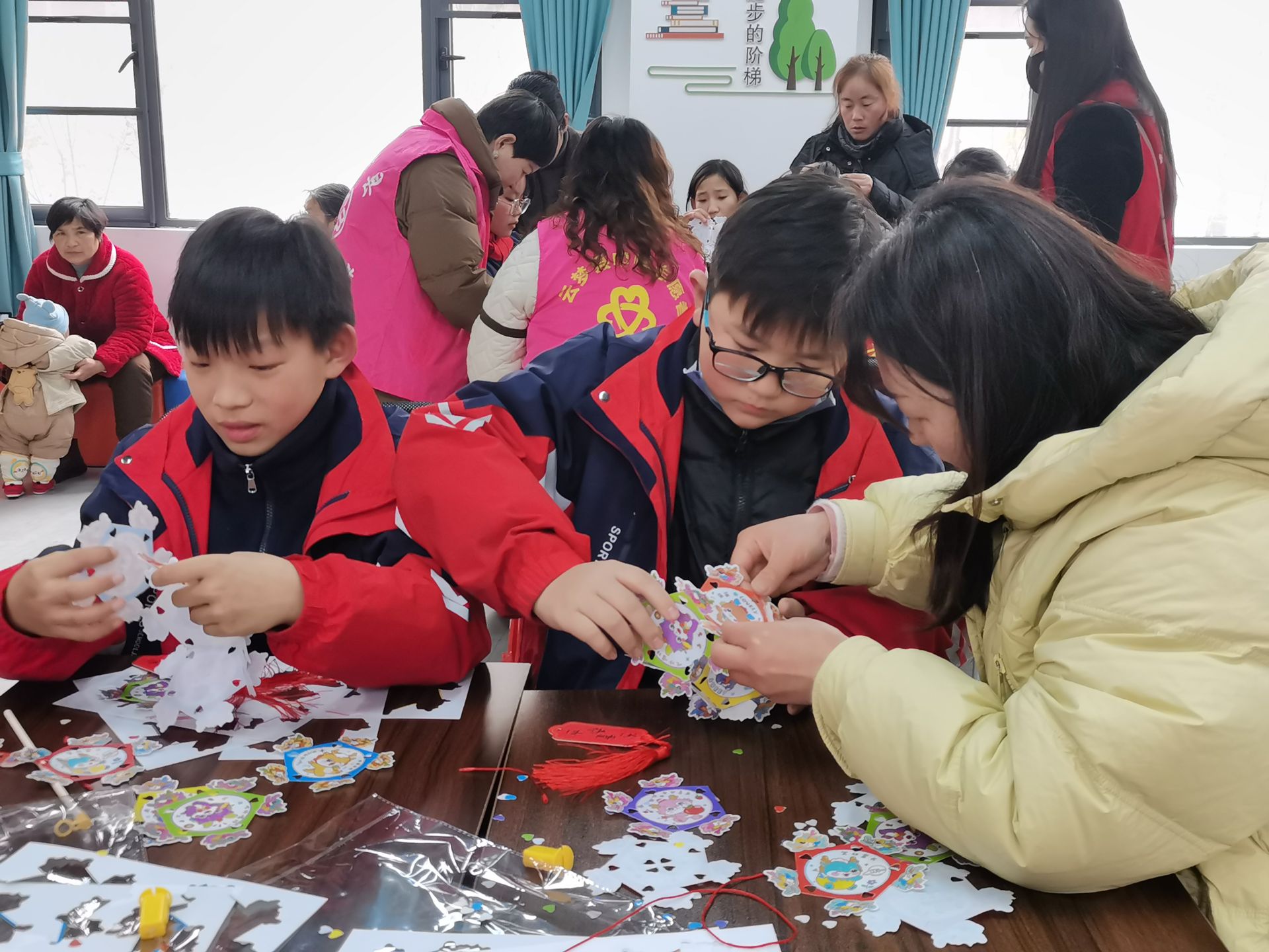 为传播中华优秀传统文化知识,丰富儿童的课外生活,迎接即将到来的新春佳节。近日,隔蒲潭镇联合县图书馆在隔蒲潭镇五小书屋,开展了以“传统之美,灯笼之韵”为主题的手工灯笼制作活动。